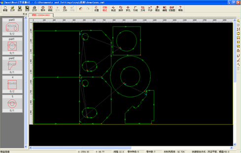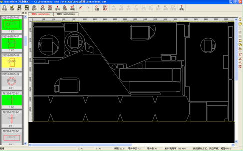 5、先進的全自動套料功能。采用新的計算智能技術和相關科研成果,對任意復雜形狀的異形零件進行全自動真實形狀套料,計算過程瞬間完成,優(yōu)化效果堪稱完美,材料利用率平均提高5%。