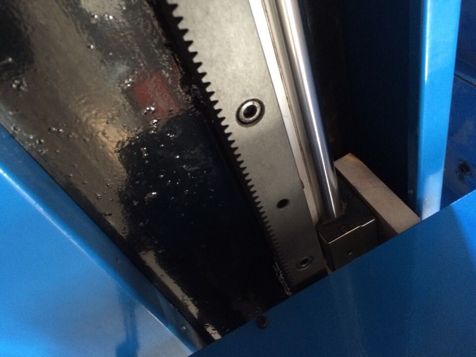 機(jī)器縱向采用高精度齒條與日本進(jìn)口松下伺服電機(jī)結(jié)合使用,所使用的齒輪、齒條全部經(jīng)過全自動新型淬火設(shè)備加以淬火處理,精密的加工工藝,使其精度達(dá)到了GB/T100967-9級標(biāo)準(zhǔn)。同時用臺灣雙滾軸直線導(dǎo)軌保證縱向行走更加精準(zhǔn)。縱向?qū)к壗?jīng)過精磨處理,表面平整度極佳,經(jīng)久耐用。設(shè)備整機(jī)在12000mm/min高速下連續(xù)工作切割,機(jī)器移動精度高,機(jī)身穩(wěn)定無抖動。